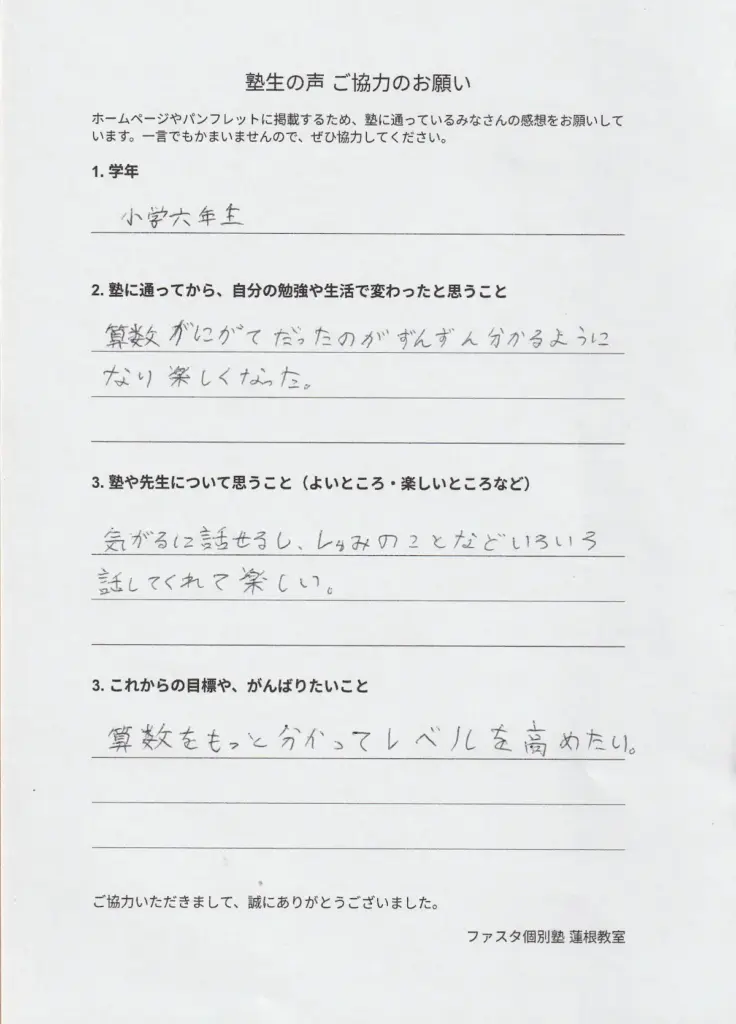 算数がにがてだったのが分かるようになって楽しい(小学6年生 塾生より)