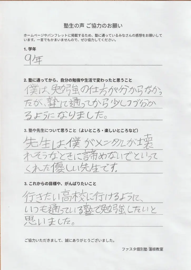 勉強の仕方が少しずつ分かるようになった(中学3年生 塾生より)